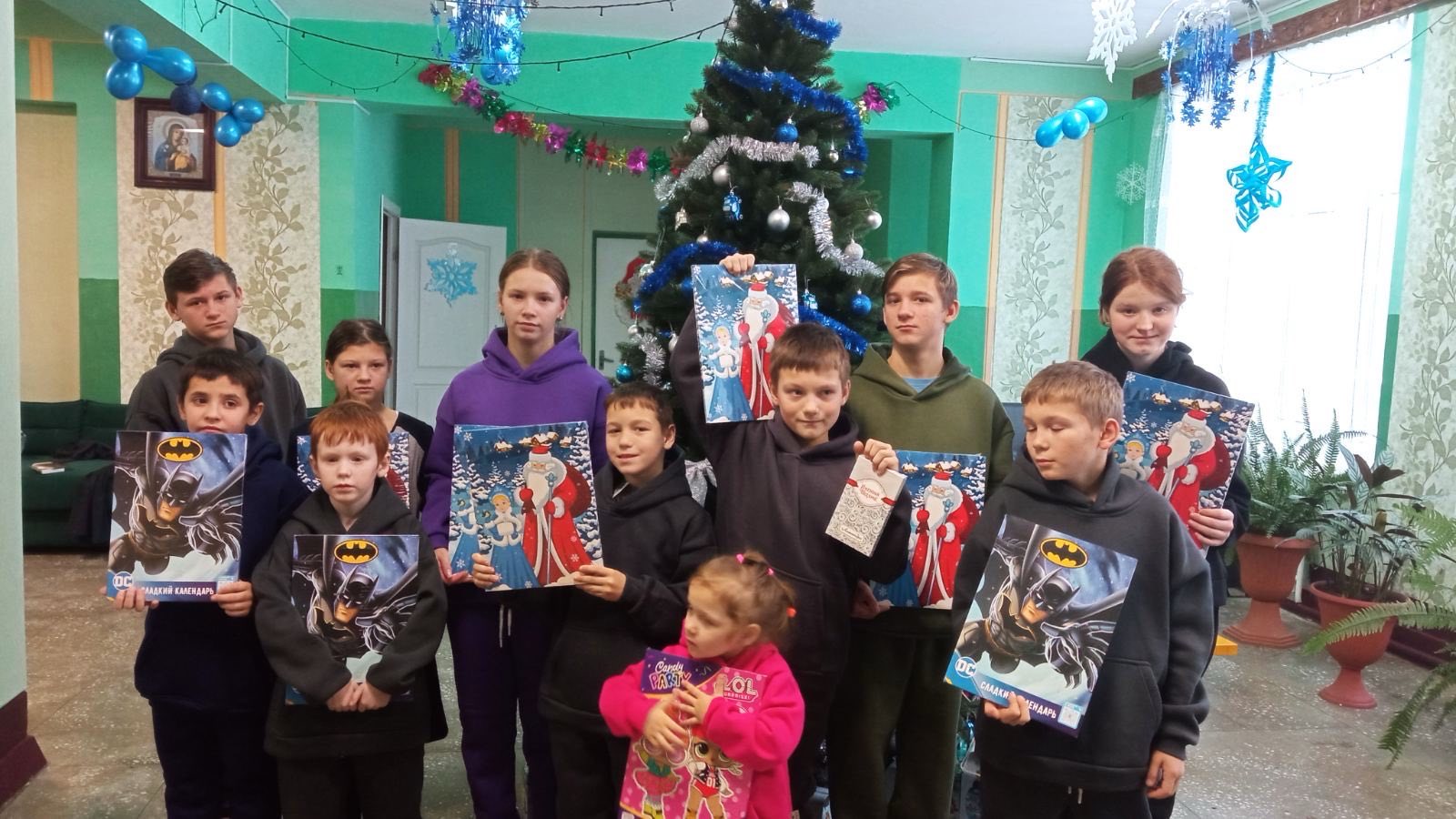 Ребята получили в подарок компьютерные принадлежности, книги и сладкие подарки.